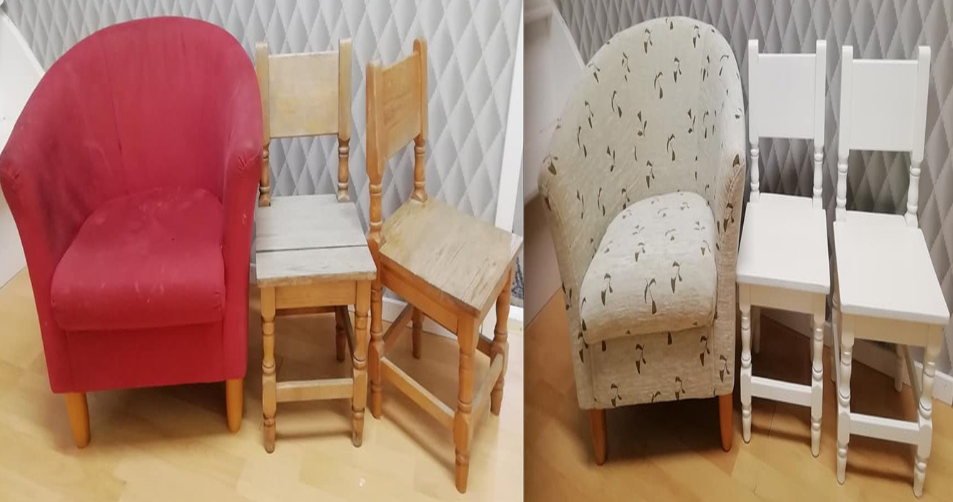 Pienimuotoiset puusepäntyöt verhoilun yhteydessä. Korjaukset ja kunnostukset osana verhoilutyötä.